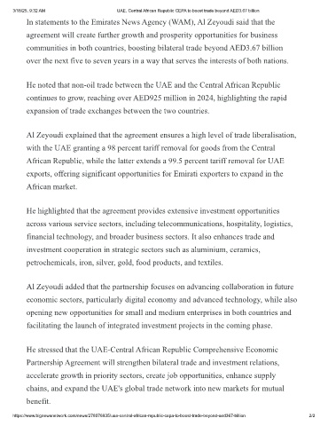 https://www.bignewsnetwork.com/news/278076935/uae-central-african-republic-cepa-to-boost-trade-beyond-aed367-billion 2/2