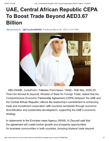 3/18/25, 9:32 AM UAE, Central African Republic CEPA To Boost Trade Beyond AED3.67 Billion - UrduPoint