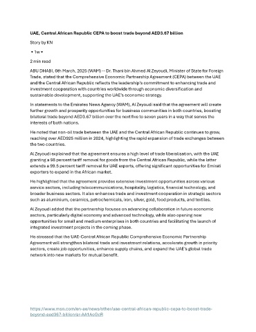 He stressed that the UAE-Central African Republic Comprehensive Economic Partnership