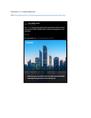 Publication: X – Forbes Middle East Link: Forbes Middle East: UAE’s real GDP posted significant growth of 3.8% during first nine months of 2024
