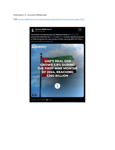 Publication: X – Economy Middle East Link: Economy Middle East: UAE’s real GDP posted significant growth of 3.8% during first nine months of 2024