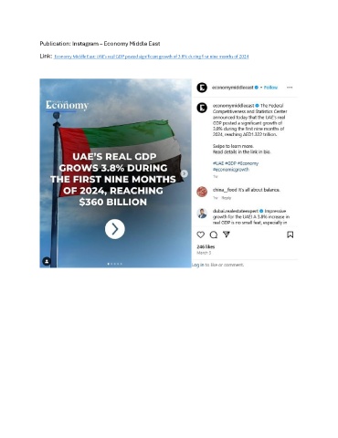 Publication: Instagram – Economy Middle East Link: Economy Middle East: UAE’s real GDP posted significant growth of 3.8% during first nine months of 2024