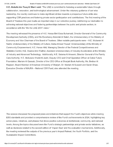 3/17/25, 2:48 PM Board of Trustees at MAJRA reviews previous year’s achievements and outcomes - Middle East News 247