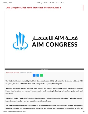 3/17/25, 1:39 PM AIM Congress 2025 hosts TradeTech Forum on April 8