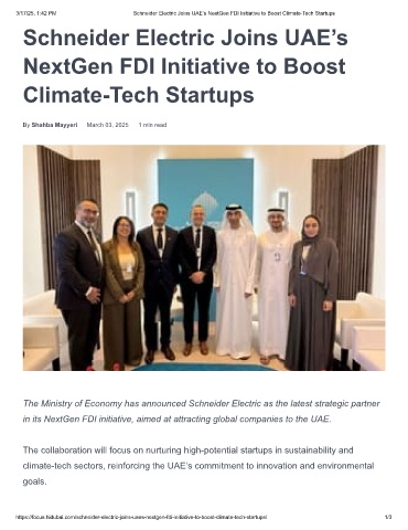 3/17/25, 1:42 PM Schneider Electric Joins UAE’s NextGen FDI Initiative to Boost Climate-Tech Startups