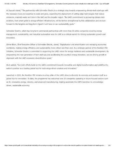 3/17/25, 1:43 PM Ministry of Economy’s NextGen FDI programme, Schneider Electric partner to scale climate-tech start-ups in UAE - Eye of Riyadh