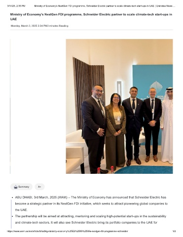 3/14/25, 2:36 PM Ministry of Economy’s NextGen FDI programme, Schneider Electric partner to scale climate-tech start-ups in UAE | Emirates News …