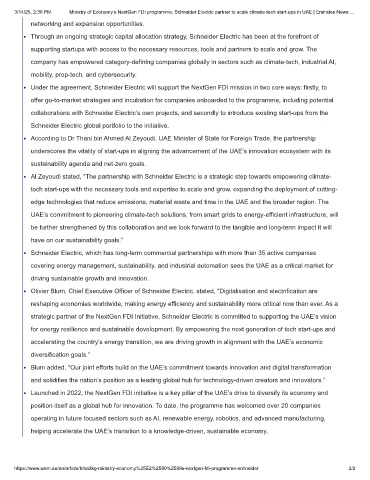 3/14/25, 2:36 PM Ministry of Economy’s NextGen FDI programme, Schneider Electric partner to scale climate-tech start-ups in UAE | Emirates News …