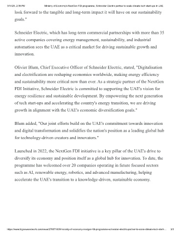 3/14/25, 2:38 PM Ministry of Economy's NextGen FDI programme, Schneider Electric partner to scale climate-tech start-ups in UAE