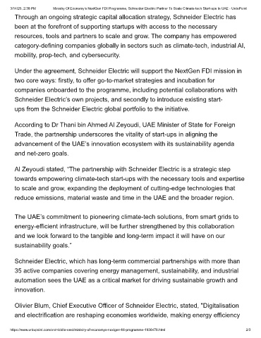 3/14/25, 2:38 PM Ministry Of Economy’s NextGen FDI Programme, Schneider Electric Partner To Scale Climate-tech Start-ups In UAE - UrduPoint