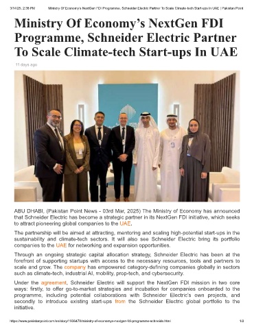 3/14/25, 2:38 PM Ministry Of Economy’s NextGen FDI Programme, Schneider Electric Partner To Scale Climate-tech Start-ups In UAE | Pakistan Point