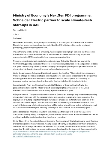 ABU DHABI, 3rd March, 2025 (WAM) -- The Ministry of Economy has announced that Schneider