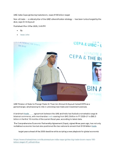 UAE Minister of State for Foreign Trade Dr Thani bin Ahmed Al Zeyoudi hailed CEPA as a