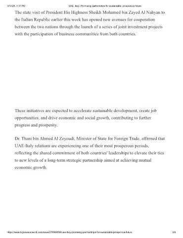 3/14/25, 1:37 PM UAE, Italy: Promising partnerships for sustainable, prosperous future