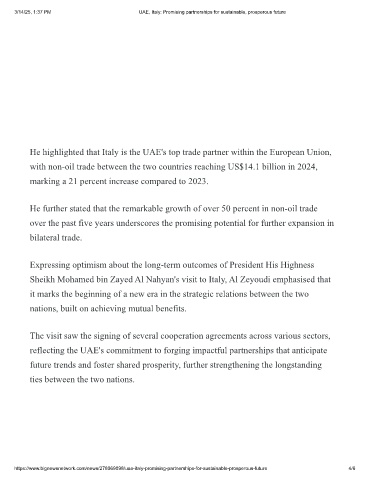 3/14/25, 1:37 PM UAE, Italy: Promising partnerships for sustainable, prosperous future