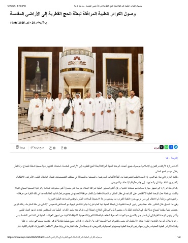 5/29/25, 1:30 PM ﺔﯾارﻟا ةدﯾرﺟ - ﺔﺳدﻘﻣﻟا ﻲﺿارﻷا ﻰﻟإ ﺔﯾرطﻘﻟا ﺞﺣﻟا ﺔﺛﻌﺑﻟ ﺔﻘﻓارﻣﻟا ﺔﯾﺑطﻟا رداوﻛﻟا لوﺻو