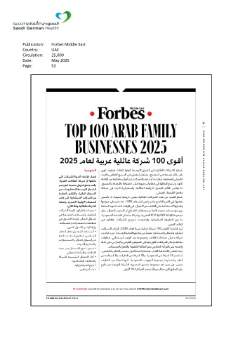 Publication: Forbes Middle East Country: UAE Circulation: 25,000 Date: May 2025 Page: 52