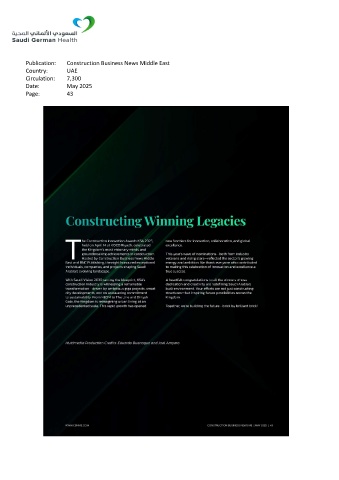 Publication: Construction Business News Middle East Country: UAE Circulation: 7,300 Date: May 2025 Page: 43