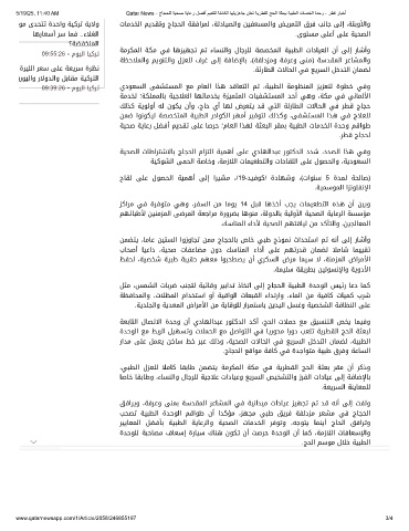 5/19/25, 11:40 AM Qatar News - جﺎﺟﺣﻠﻟ ﺔﯾﺣﺻ ﺔﯾﺎﻋر لﺿﻓأ مﯾدﻘﺗﻟ ﺔﻠﻣﺎﻛﻟا ﺎﮭﺗﯾزھﺎﺟ نﻠﻌﺗ ﺔﯾرطﻘﻟا ﺞﺣﻟا ﺔﺛﻌﺑﺑ ﺔﯾﺑطﻟا تﺎﻣدﺧﻟا ةدﺣو - رطﻗ رﺎﺑﺧأ