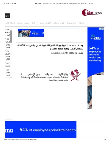5/19/25, 11:40 AM Qatar News - جﺎﺟﺣﻠﻟ ﺔﯾﺣﺻ ﺔﯾﺎﻋر لﺿﻓأ مﯾدﻘﺗﻟ ﺔﻠﻣﺎﻛﻟا ﺎﮭﺗﯾزھﺎﺟ نﻠﻌﺗ ﺔﯾرطﻘﻟا ﺞﺣﻟا ﺔﺛﻌﺑﺑ ﺔﯾﺑطﻟا تﺎﻣدﺧﻟا ةدﺣو - رطﻗ رﺎﺑﺧأ