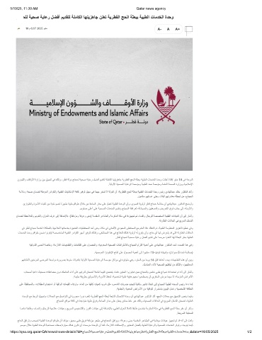 https://qna.org.qa/ar-QA/news/news-details?id=جﺎﺟﺣﻠﻟ-ﺔﯾﺣﺻ-ﺔﯾﺎﻋر-لﺿﻓا-مﯾدﻘﺗﻟ-ﺔﻠﻣﺎﻛﻟا-ﺎﮭﺗﯾزھﺎﺟ-نﻠﻌﺗ-ﺔﯾرطﻘﻟا-ﺞﺣﻟا-ﺔﺛﻌﺑﺑ-ﺔﯾﺑطﻟا-تﺎﻣدﺧﻟا-ةدﺣو&date=18/05/2025 1/2
