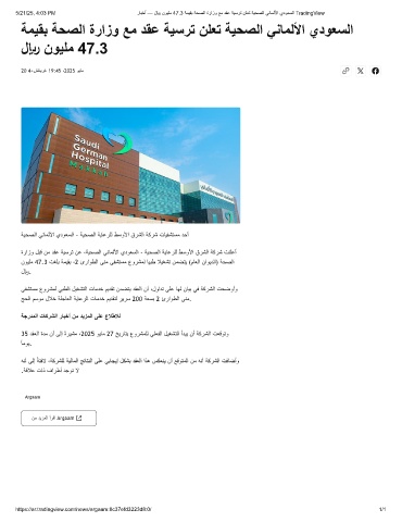 5/21/25, 4:03 PM رﺎﺑﺧأ — ﷼ نوﯾﻠﻣ 47.3 ﺔﻣﯾﻘﺑ ﺔﺣﺻﻟا ةرازو ﻊﻣ دﻘﻋ ﺔﯾﺳرﺗ نﻠﻌﺗ ﺔﯾﺣﺻﻟا ﻲﻧﺎﻣﻟﻷا يدوﻌﺳﻟا TradingView
