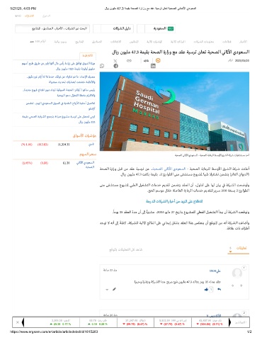 5/21/25, 4:03 PM ﷼ نوﯾﻠﻣ 47.3 ﺔﻣﯾﻘﺑ ﺔﺣﺻﻟا ةرازو ﻊﻣ دﻘﻋ ﺔﯾﺳرﺗ نﻠﻌﺗ ﺔﯾﺣﺻﻟا ﻲﻧﺎﻣﻟﻷا يدوﻌﺳﻟا