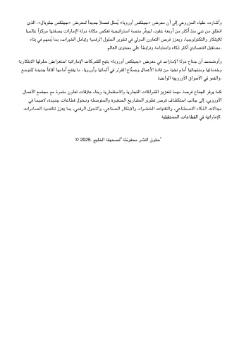 ﺔﻳرﺎﺘﺑﻻا ﺎﻬﻟﻮﻠﺣ ضاﺮﻌﺘﺳا ﺔﻴﺗارﺎﻣﻹا تﺎﻛﺮﺸﻠﻟ ﺢﻴﺘﻳ «ﺎﺑوروأ ﺲﺘﻴﺟ» ضﺮﻌﻣ ﻓ تارﺎﻣﻹا ﺔﻟود حﺎﻨﺟ نأ ﺖﺤﺿوأو