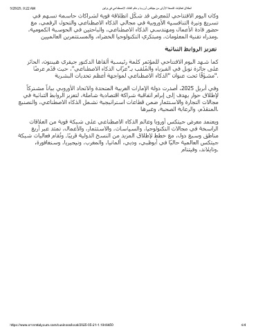 ً ﺎﻛﺮﺘﺸﻣ ﺎﻧﺎﯿﺑ ﻲﺑوروﻷا دﺎﺤﺗﻻاو ةﺪﺤﺘﻤﻟا ﺔﯿﺑﺮﻌﻟا تارﺎﻣﻹا ﺔﻟود ترﺪﺻأ ،2025 ﻞﻳﺮﺑأ ﻲﻓو