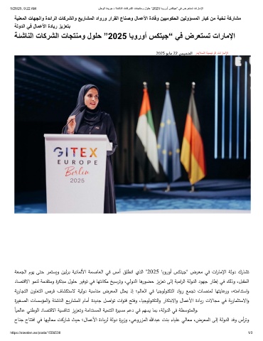 5/28/25, 9:22 AM نطوﻟا ةدﯾرﺟ › ﺔﺋﺷﺎﻧﻟا تﺎﻛرﺷﻟا تﺎﺟﺗﻧﻣو لوﻠﺣ ”2025 ﺎﺑوروأ سﻛﺗﯾﺟ“ ﻲﻓ ضرﻌﺗﺳﺗ تارﺎﻣﻹا