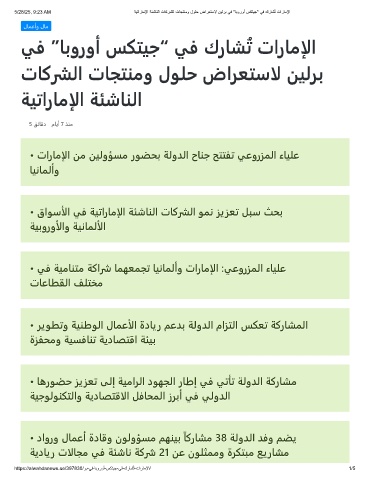 5/28/25, 9:23 AM ﺔﯾﺗارﺎﻣﻹا ﺔﺋﺷﺎﻧﻟا تﺎﻛرﺷﻟا تﺎﺟﺗﻧﻣو لوﻠﺣ ضارﻌﺗﺳﻻ نﯾﻟرﺑ ﻲﻓ "ﺎﺑوروأ سﻛﺗﯾﺟ" ﻲﻓ كرﺎﺷُﺗ تارﺎﻣﻹا