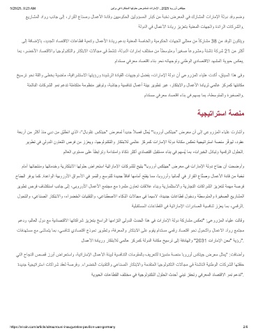 مﺎﻣأ ﺎﮭﺗﺎﺟﺗﻧﻣو ﺎﮭﺗﺎﻣدﺧو ﺔﯾرﺎﻛﺗﺑﻻا ﺎﮭﻟوﻠﺣ ضارﻌﺗﺳا ﺔﯾﺗارﺎﻣﻹا تﺎﻛرﺷﻠﻟ ﺢﯾﺗﯾ "ﺎﺑوروأ سﻛﺗﯾﺟ" ضرﻌﻣ ﻲﻓ تارﺎﻣﻹا ﺔﻟود حﺎﻧﺟ نأ تﺣﺿوأو