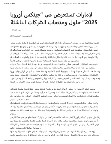 5/28/25, 9:23 AM ﺔﺋﺷﺎﻧﻟا تﺎﻛرﺷﻟا تﺎﺟﺗﻧﻣو لوﻠﺣ "2025 ﺎﺑوروأ سﻛﺗﯾﺟ" ﻲﻓ ضرﻌﺗﺳﺗ تارﺎﻣﻹا - Nas News UAE