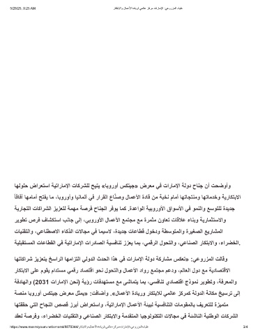 https://www.masralyoum.net/emarat/8870344/رﺎﻛﺗﺑﻻاو-لﺎﻣﻋﻷا-ةدﺎﯾرﻟ-ﻲﻣﻟﺎﻋ-زﻛرﻣ-تارﺎﻣﻹا-ﻲﻋورزﻣﻟا-ءﺎﯾﻠﻋ 3/4