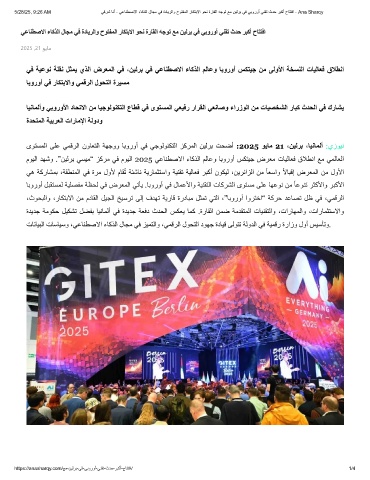 5/28/25, 9:26 AM ﻲﻗرﺷ ﺎﻧأ - ﻲﻋﺎﻧطﺻﻻا ءﺎﻛذﻟا لﺎﺟﻣ ﻲﻓ ةدﺎﯾرﻟاو حوﺗﻔﻣﻟا رﺎﻛﺗﺑﻻا وﺣﻧ ةرﺎﻘﻟا ﮫﺟوﺗ ﻊﻣ نﯾﻟرﺑ ﻲﻓ ﻲﺑوروأ ﻲﻧﻘﺗ ثدﺣ رﺑﻛأ حﺎﺗﺗﻓا - Ana Sharqy