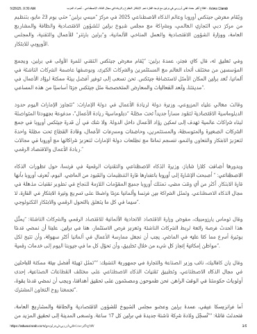 ﺲﻠﺠﻤﻟاو ،ﺔﻴﻨﻘﺘﻟاو لﺎﻤﻋألﻟ ”ﺮﻨﺗرﺎﺑ ﻦﻴﻟﺮﺑ”و ،ﺔﻴﻧﺎﻤﻟألا ﻲﺧﺎﻨﻤﻟا ﻞﻤﻌﻟاو ﺔﻳدﺎﺼﺘﻗالا نوﺆﺸﻟا ةرازوو ،ﺔﻣﺎﻌﻟا