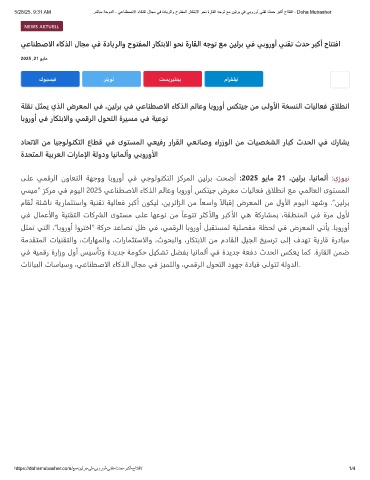 5/28/25, 9:31 AM رﺷﺎﺑﻣ ﺔﺣودﻟا - ﻲﻋﺎﻧطﺻﻻا ءﺎﻛذﻟا لﺎﺟﻣ ﻲﻓ ةدﺎﯾرﻟاو حوﺗﻔﻣﻟا رﺎﻛﺗﺑﻻا وﺣﻧ ةرﺎﻘﻟا ﮫﺟوﺗ ﻊﻣ نﯾﻟرﺑ ﻲﻓ ﻲﺑوروأ ﻲﻧﻘﺗ ثدﺣ رﺑﻛأ حﺎﺗﺗﻓا - Doha Mubasher
