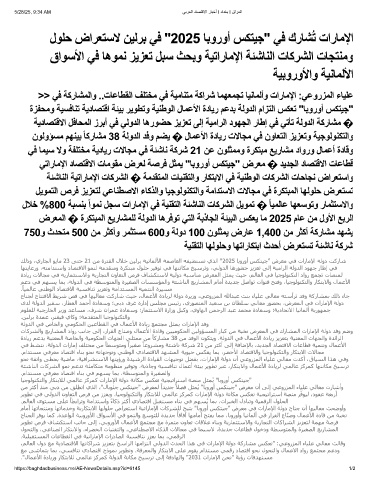 ﻚﻟذو ،يرﺎﺠﻟا ﻮﻳﺎﻣ 23 ﻰﺘﺣ 21 ﻦﻣ ةﺮﺘﻔﻟا لﻼﺧ ﻦﯿﻟﺮﺑ ﺔﯿﻧﺎﻤﻟﻷا ﺔﻤﺻﺎﻌﻟا ﻪﻔﯿﻀﺘﺴﺗ يﺬﻟا "2025 ﺎﺑوروأ ﺲﻜﺘﯿﺟ" ضﺮﻌﻣ ﻲﻓ تارﺎﻣﻹا ﺔﻟود ﺖﻛرﺎﺷ