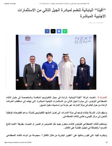 ءﺎﻛﺬﻟا لﻮﻠﺣ ﻲﻓ ﺔﺼﺼﺨﺘﻤﻟاو ﺔﻣﺪﻘﺘﻤﻟا ﺎﯿﺟﻮﻟﻮﻨﻜﺘﻟا لﺎﺠﻣ ﻲﻓ ةﺪﺋاﺮﻟا ،ﺔﯿﻧﺎﺑﺎﯿﻟا"ﺎﺘﯿﻓأ" ﺔﻛﺮﺷ ﺖﻤﻀﻧا - 7 تارﺎﻣﻻا