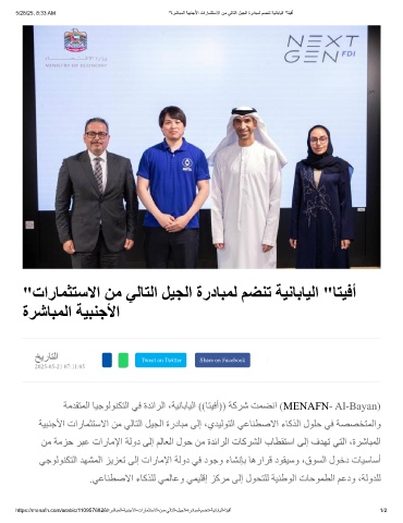ﺔﻣﺪﻘﺘﻤﻟا ﺎﯿﺟﻮﻟﻮﻨﻜﺘﻟا ﻲﻓ ةﺪﺋاﺮﻟا ،ﺔﯿﻧﺎﺑﺎﯿﻟا ((ﺎﺘﯿﻓأ)) ﺔﻛﺮﺷ ﺖﻤﻀﻧا (MENAFN- Al-Bayan)