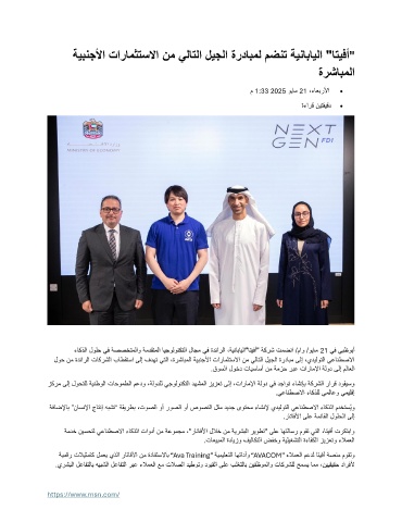 ءاكذلا لولح يف ةصصختملاو ةمدقتملا ايجولونكتلا لاجم يف ةدئارلا ،ةينابايلا"اتيفأ" ةكرش تمضنا /ماو /ويام 21 يف يبظوبأ