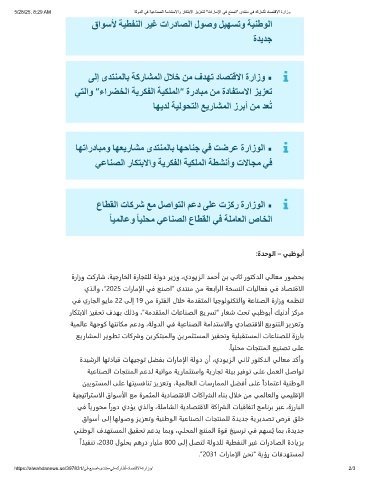 5/28/25, 8:29 AM ﺔﻟودﻟا ﻲﻓ ﺔﯾﻋﺎﻧﺻﻟا ﺔﻣادﺗﺳﻻاو رﺎﻛﺗﺑﻻا زﯾزﻌﺗﻟ "تارﺎﻣﻹا ﻲﻓ ﻊﻧﺻا" ىدﺗﻧﻣ ﻲﻓ كرﺎﺷُﺗ دﺎﺻﺗﻗﻻا ةرازو
