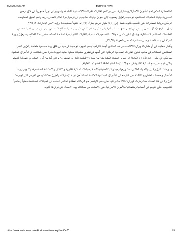 ﻲﻓ تﺎﻛارﺷﻟا صرﻓ ﻊﯾﺳوﺗو ،ﻲﻋﺎﻧﺻﻟا عﺎطﻘﻟا ﺔﯾﻣﻧﺗو رﯾوطﺗ ﻲﻓ ﺔﻟودﻟا دوﮭﺟﻟ ةزرﺎﺑ ﺔﯾﻧطو ﺔﺻﻧﻣ (تارﺎﻣﻹا ﻲﻓ ﻊﻧﺻا) ىدﺗﻧﻣ لّﻛﺷُﯾ" :ﮫﯾﻟﺎﻌﻣ لﺎﻗو