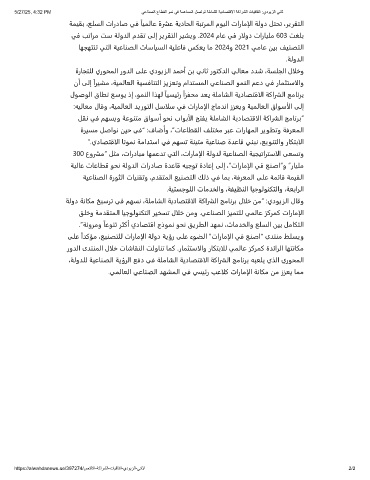 ﻰﻠﻋ ًاﺪﻛﺆﻣ ،ﻊﻴﻨﺼﺘﻠﻟ تارﺎﻣإلا ﺔﻟود ﺔﻳؤر ﻰﻠﻋ ءﻮﻀﻟا ”تارﺎﻣإلا ﻲﻓ ﻊﻨﺻا“ ىﺪﺘﻨﻣ ﻂﻠﺴﻳو