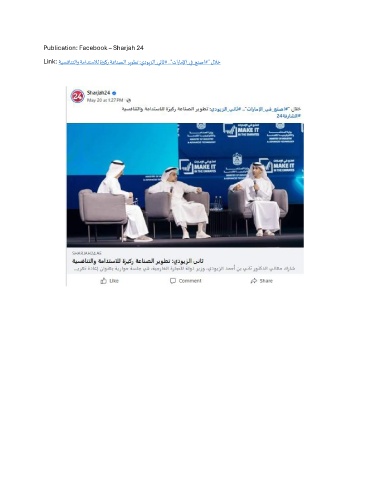 Publication: Facebook – Sharjah 24 Link: ةيسفانتلاو ةمادتسلال ةزيكر ةعانصلا ريوطت :يدويزلا_يناث# .."تاراملإا_يف_عنصا#" للاخ