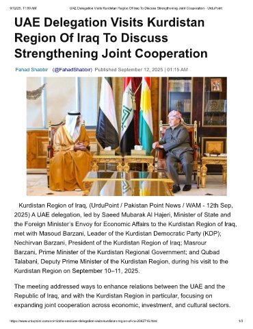 9/12/25, 11:09 AM UAE Delegation Visits Kurdistan Region Of Iraq To Discuss Strengthening Joint Cooperation - UrduPoint