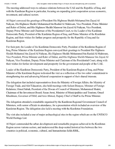 9/12/25, 11:09 AM UAE delegation visits Kurdistan Region of Iraq to discuss strengthening joint cooperation