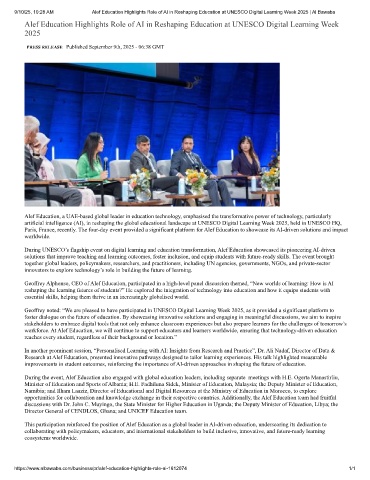 9/10/25, 10:28 AM Alef Education Highlights Role of AI in Reshaping Education at UNESCO Digital Learning Week 2025 | Al Bawaba