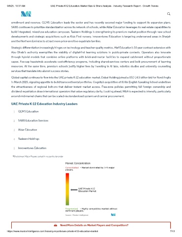 enrollment and revenue. GEMS Education leads the sector and has recently secured major funding to support its expansion plans.