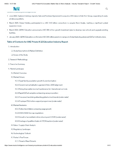 Table of Contents for UAE Private K-12 Education Industry Report